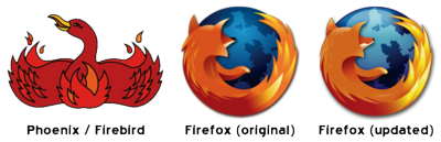השם "Phoenix" נשמר עד ל־14 באפריל 2003, עת שונה בשל סוגיות זכויות יוצרים עם יצרנית ה־BIOS "Phoenix Technologies" (המייצרת דפדפן מבוסס BIOS). השם החדש שנבחר, "Firebird", התקבל בתחושות מעורבות, בעיקר בשל העובדה שתוכנת מסדי הנתונים החופשית "Firebird" השתמשה באותו שם. בסוף אפריל, לאחר שנראה היה שהשם שונה ל־"Firebird Browser", הודיעה קרן מוזילה כי יש לקרוא לדפדפן בשם "Mozilla Firebird", על מנת שתיווצר הבחנה בינו לבין תוכנת מסדי הנתונים. עם זאת, לחץ רב מצד קהילת הקוד הפתוח אילץ שינוי נוסף בשם, וב־9 בפברואר 2004 שינתה קרן מוזילה את שמו של הדפדפן ל"מוזילה פיירפוקס" (או "פיירפוקס" בקיצור).